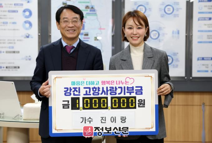 강진원 강진군수는 “고향사랑기부로 잊지않고 강진을 사랑해주신 강진, 나주 축협 관계자 및 고서경 대표님, 김진성 대표님, 진이랑 가수님께 감사드린다”며 “많은 분들께서 동참하시어 연말정산 세액공제와 답례품 혜택 누리시길 바란다”고 말했다.