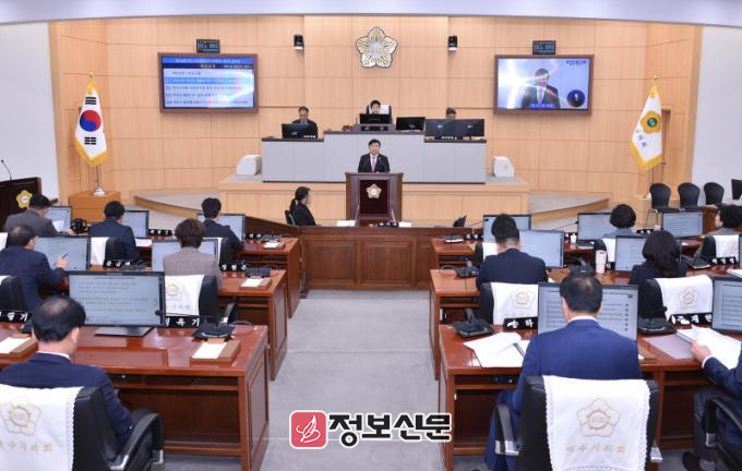![]() ▲ 정기명 여수시장은 지난 18일 제252회 시의회 본회의장에서 2026년도 예산안 제출에 따른 시정연설을 통해 내년도 시정 운영 방향을 밝혔다.