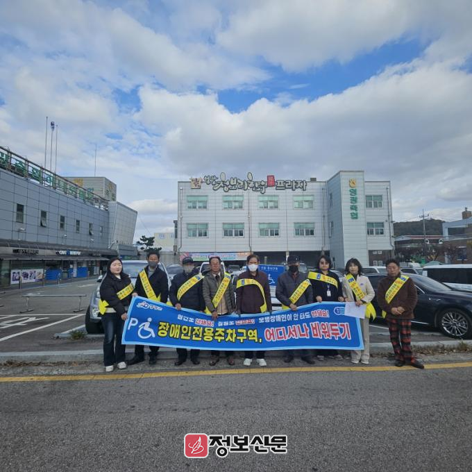 이번 활동은 장애인의 이동권 보장과 주차 질서 확립을 위해 실시한 것으로, 우리 군민들의 인식 개선을 통한 민원 최소화 및 위반행위 근절에 목적을 두고 진행되었다. 이날 합동점검반은 민원빈발지역에서 홍보 활동을 펼치며 장애인전용주차구역의 올바른 이용을 안내하였다.