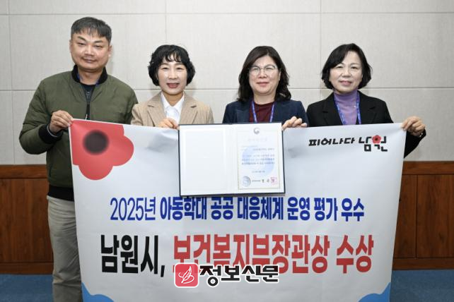 ![]() 남원시, 2025년 보건복지부 아동학대 공공 대응체계 운영 평가 ‘우수상’수상 |