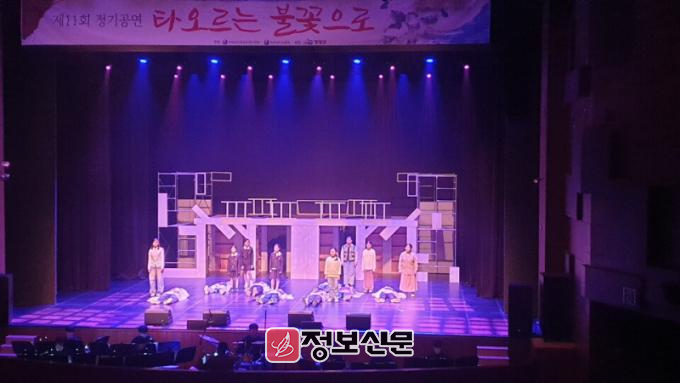 제11회 정기공연작 「타오르는 불꽃으로」는 제주 4·3사건, 여순사건(10.19), 5·18민주화운동, 6월항쟁, 2024년 12.3 내란까지 한국 현대사의 민주화 여정을 하나의 서사로 엮은 옴니버스형 뮤지컬이다.