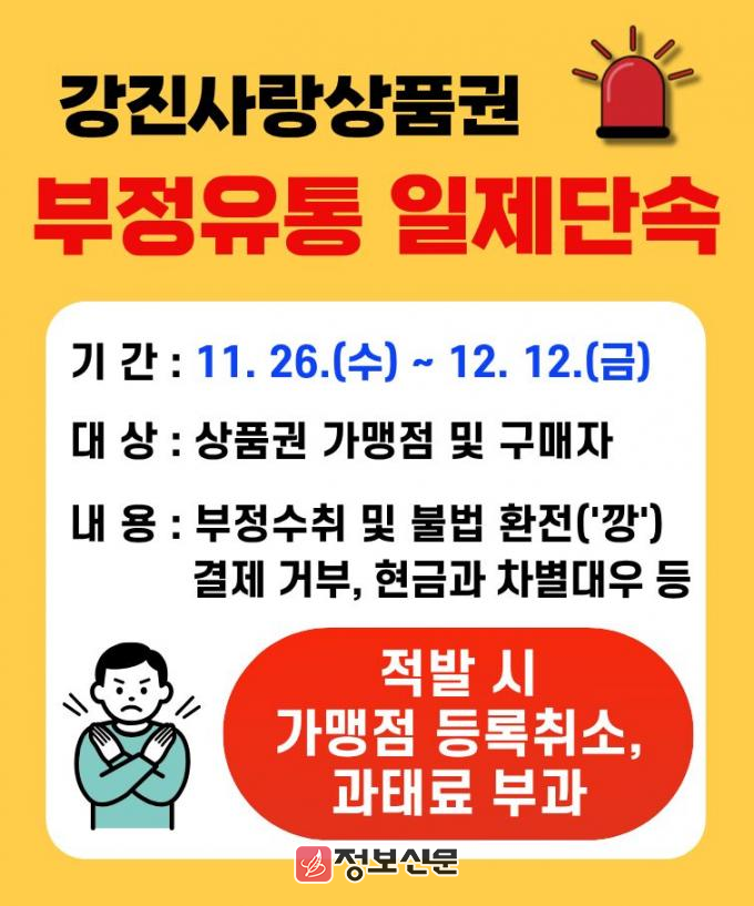 ![]() 강진군, 강진사랑상품권 부정유통 일제단속 실시 |