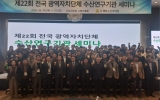 전남 남재옥 기자2026. 03.27[정보신문 = 남재옥 기자] 전라남도해양수산과학원은 27일까지 이틀간 여수 디오션호텔에서 ‘제22회 전국 광역자치단체 수산연구기관 세미나’를 개최, 전국 해양수산 연구기관 간 협력과 미래 수산업 대응 전략 논의를 주도했다. 이번 세미나는 전남도해양수산과학원 주관으로 전국 10개 광역자치단체 수산연구기관이 한자리에 모인 가운데, 기후변화로 급변하는 해양환경에 대응하고 지속가능한 수산업 발전을 도모하기 위한 협력 기반을 한층 공고히 하는 자리로 마련됐다. 특히 고수온 등 기후변화 영향에 선제적으로 대응하기 위한 내성 품종 ...