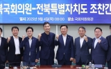 사회 김금덕 기자2025. 09.04[정보신문 = 김금덕 기자] 전북특별자치도가 지역 국회의원과 함께 2026년 국가예산 확보와 새만금 사업 등 도정 현안 해결 방안을 모색하는 자리를 가졌다. 전북자치도는 4일 국회의원회관에서 김관영 도지사와 더불어민주당 이원택 전북특별자치도당위원장을 비롯한 지역 국회의원들이 참석한 가운데 조찬 간담회를 개최했다. 이 자리에서는 ▲2026년 국가예산 확보 현황 ▲국정과제 반영 후속 대응 ▲새만금 글로벌 첨담전략산업기지 구축 ▲제2중앙경찰학교 유치 ▲농촌진흥청 식품자원개발부 전북 완전 이전 ▲공공의대․전북특별법...