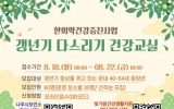 나주 김금덕 기자2025. 08.20[정보신문 = 김금덕 기자] 나주시(시장 윤병태)는 갱년기 증상을 겪고 있는 중장년을 대상으로 한 한의약 기반 건강증진 프로그램인 ‘갱년기 다스리기 건강 교실’을 9월 2일부터 11월 14일까지 운영한다고 밝혔다. 이 프로그램은 나주시에 거주하며 갱년기 증상을 겪고 있는 만 40세부터 64세까지의 중장년층을 대상으로 9월부터 매주 1회씩 총 10주간 나주시보건소와 빛가람건강생활지원센터에서 진행된다. 참여자 모집은 8월 18일부터 22일까지 운영 장소별 30명씩 선착순 모집하며, 참여 신청은 QR코드를 통해 온라인으로 접수...
