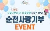 순천 김금덕 기자2025. 08.20[정보신문 = 김금덕 기자] 순천시(시장 노관규)는 9월 4일 ‘고향사랑의 날’을 기념해 8월 20일부터 9월 30일까지 고향사랑기부제 특별이벤트를 진행한다고 밝혔다. ‘고향사랑의 날’은 법정기념일로, 정부가 고향의 소중함을 되새기고 고향사랑기부제에 대한 국민적 관심을 높이기 위해 제정한 날이다. 이벤트 기간 내 순천시에 기부한 개인 중 추첨을 통해 총 50명을 선정, 3만 원 상당의 인기 답례품 1종을 추가로 제공할 계획이다. 참여 방법은 순천시에 주소를 두지 않은 개인(법인은 참여 불가)이 고향사랑e음 누리집 또는 농...