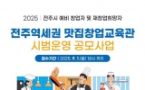 전주 김금덕 기자2025. 08.18[정보신문 = 김금덕 기자] 전주시도시재생지원센터가 오는 9월 1일 오후 6시까지 외식 창업을 꿈꾸는 창업자 육성을 위한 ‘전주역세권 맛집창업교육관 시범운영 공모사업’의 참가자를 모집한다. 이 사업은 외식 창업을 희망하는 지역민을 대상으로 창업 운영 기회와 맞춤형 지원 프로그램 등을 제공하는 것으로, 전주시·완주군에 거주중인 청년창업자, 여성창업자, 실버창업자, 재창업자를 대상으로 △시범운영 공간 제공 △기본 주방 기기 일부 및 테이블 등 사용 △메뉴 개발 △운영 홍보 등을 지원한다. 특히, 이번 사업은 모집 대상을 기존...