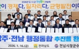 전남 남재옥 기자2026. 01.16[정보신문 = 남재옥 기자] 전라남도는 16일 전남도청 왕인실에서 ‘2026년 도-시군 상생협력 간담회’를 열어 지역 대도약을 위한 광주·전남 행정통합 추진에 도와 22개 시군이 공동 보조를 맞추기로 했다. 간담회는 김영록 전남도지사와 22개 시장·군수 등 관계자 100여 명이 참석한 가운데, 광주·전남 행정통합 추진계획과 전남도 재생에너지 추진전략을 중심으로 발표와 토론이 진행됐다. 이들은 광주·전남 행정통합을 통해 대한민국 제1호 통합 광역지방정부 출범을 목표로, 도와 시군이 상생 협력 의지를 재확인하고, 전남의 미래...
