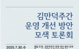 제주도 김금덕 기자2025. 07.30[정보신문 = 김금덕 기자] 제주특별자치도가 주최하고 재단법인 김만덕재단(이사장 양원찬)과 김만덕기념관(관장 강영진)이 주관하는 ‘김만덕주간 운영 개선 방안 모색을 위한 토론회’가 7월 30일(수) 오후4시에 김만덕기념관 만덕홀에서 개최된다. 토론회에서는 김만덕주간의 의의와 지속가능성, 운영 개선 방안 모색을 위한 발표와 토론이 진행될 예정이다. 주제발표는 김동전 제주대학교 사학과 교수가 ‘김만덕상 선양사업 글로벌화 전략과 김만덕주간 활성화 방안’에 대해 제안한다. 발표에 이어 토론에는 고미 ㈜FRLOCAL 대표(...
