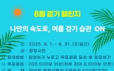 광양 김금덕 기자2025. 07.28[정보신문 = 김금덕 기자] 광양시는 오는 8월 1일부터 31일까지 한 달간 모바일 걷기 앱 ‘워크온(WalkOn)’에서 ‘나만의 속도로, 여름 걷기 습관 ON’ 8월 걷기 챌린지를 운영한다고 밝혔다. 광양시민이라면 누구나 챌린지에 참여할 수 있으며, 참여 방법도 간단하다. 워크온 앱을 설치한 뒤 ‘광양시 공식 커뮤니티’에 가입하고, 챌린지 탭에서 ‘광양시 걷기 챌린지 참여하기’를 선택하면 된다. 이후 스마트폰을 지니고 걸으면 걸음 수에 따라 마일리지가 자동으로 적립된다. 참여자는 1걸음당 1마일리지를 적립할 수 있으며...