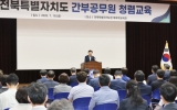 전북 김금덕 기자2025. 07.18[정보신문 = 김금덕 기자] 전북특별자치도가 고위 공직자의 청렴 리더십 강화를 위한 교육에 나섰다. 전북특별자치도는 7월 18일 오후 도청 4층 대회의실에서 4급 이상 간부공무원 120여 명이 참석한 가운데 ‘간부공무원 청렴교육’을 실시했다고 밝혔다. 이번 교육은 부패 방지 및 공직윤리 강화를 통해 신뢰받는 도정을 실현하고, 특히 올해 말 예정된 ‘2025년 공공기관 종합청렴도 평가’에서 1등급 달성을 위한 사전 준비의 일환으로 마련됐다. 교육 강사로는 국민권익위원회 부패방지국장을 맡고 있는 민성심 국장이 초청됐다...