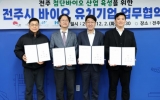 전주 남재옥 기자2025. 12.02[정보신문 = 남재옥 기자] 첨단바이오 분야 기술력을 보유한 국내 기업들이 전주에 둥지를 틀면서 바이오산업을 새로운 성장동력으로 육성해 온 전주시의 계획에 힘이 실리게 됐다. 전주시는 2일 전주시청 3층 소회의실에서 파마로보틱스와 뉴아인, 하이퍼틱스 등 첨단바이오 분야 기술력을 보유한 3개 기업과 공동 성장을 위한 업무협약을 체결했다. 이날 협약식에는 우범기 전주시장과 세 기업의 대표 등 관계자 8명이 참석했으며, 이들은 기업 애로 해소와 산업 생태계 확장을 위한 상생 협력에 나서기로 뜻을 모았다. 이 자리에서 시는 현재...