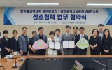 교육 김금덕 기자2025. 07.07[정보신문 = 김금덕 기자] 광주시교육청교육연수원(이하 교육연수원)과 한국폴리텍대학 광주캠퍼스가 교직원 진로지도 역량 강화를 위해 함께 나선다. 교육연수원 노경희 원장과 폴리텍대학 광주캠퍼스 배규환 학장 직무대리는 7일 폴리텍대학 광주캠퍼스 대학본부 대회의실에서 ‘교직원 진로지도 역량 강화를 위한 업무협약’을 체결했다. 이에 따라 두 기관은 ▲진로지도 역량 강화 프로그램 개발 ▲폴리텍대학이 운영하고 있는 ‘꿈드림공작소’를 활용한 교직원 대상 체험 프로그램 제공 ▲생애 전 주기 직업교육 제공 ▲교직원 연수 역량강화·진로교...