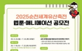 순천 김금덕 기자2025. 06.25[정보신문 = 김금덕 기자] 순천시(시장 노관규)와 순천시 세계유산보존협의회(위원장 김준선)가 오는 9월 12일부터 10월 3일까지 진행되는 「2025순천세계유산축전」을 앞두고, 세계유산의 가치를 알리기 위한 웹툰・애니메이션 공모전을 개최한다. 이번 공모전은 순천이 간직한 세계유산의 매력을 웹툰과 애니메이션이라는 콘텐츠로 표현함으로써, 미래세대와 소통할 수 있는 문화적 가치를 창출하고자 하는데 의의가 있다. 공모 기간은 6월 23일부터 7월 22일까지이며, 작품 접수는 7월 16일부터 22일까지 이메일(2025sc...