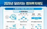 경제 남재옥 기자2026. 01.06[정보신문 = 남재옥 기자] 중소벤처기업부(장관 한성숙, 이하 중기부) 광주전남지방중소벤처기업청(청장 박종찬)에 따르면, 벤처투자 촉진에 관한 법률 및 하위법령(시행령, 시행규칙) 개정을 바탕으로 ’26년에 새롭게 달라지는 벤처투자 제도를 발표하였다고 밝혔다. 법·제도 개편사항은 ’25년에 개정되어 시행중이거나, ’26년에 개정될「벤처 4대 강국 도약 종합대책」(’25.12)의 후속 입법 과제로, ▲벤처투자 주체의 투자 규제 개선, ▲벤처투자 세제 지원 확대, ▲벤처투자 생태계 기반 강화 등 크게 세 가지로 구분되며, 주요 내...
