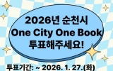 순천 남재옥 기자2026. 01.06[정보신문 = 남재옥 기자] 순천시가 오는 27일까지 2026년 한 해 동안 순천시민이 함께 읽을 ‘2026년 순천시 One City One Book’ 선정을 위한 시민 투표를 진행한다고 밝혔다. One City One Book 시민 투표는 온라인과 오프라인으로 진행된다. 온라인은 네이버폼(https://naver.me/GkUvjuco)에서 진행되며, 온라인 투표 후 인스타그램 이벤트에 참여하면 추첨을 통해 100명에게 커피 기프티콘을 증정하는 이벤트도 운영한다. 오프라인은 순천시립도서관(삼산, 그림책, 기적, 조례호수, 신대...