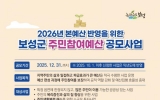 고흥 김금덕 기자2025. 05.09[정보신문 = 김금덕 기자] 보성군은 오는 12월 31일까지 주민들의 적극적인 참여를 바탕으로 지역 발전을 위한 예산을 편성하기 위해 ‘주민참여예산 제안사업’을 상시 접수한다고 밝혔다. 이번 공모는 주민의 삶과 밀접한 사업을 군민들이 직접 제안하고 예산에 반영함으로써, 보다 실질적인 주민 중심 행정을 실현하고, 살기 좋은 지역사회를 만들기 위해 마련됐다. 제안 분야는 ▲지역 주민의 복지증진과 삶의 질 향상을 위한 사업, ▲다수의 주민이 혜택을 받을 수 있는 공공성 높은 사업, ▲인구 늘리기 및 일자리 창출과 관련된 사업...