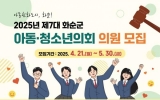 신안 김금덕 기자2025. 04.08[정보신문 = 김금덕 기자] 아동친화도시 화순군(군수 구복규)은 ‘2025년 제7대 화순군 아동·청소년의회’ 의원 30명을 오는 4월 21일부터 5월 30일까지 공개 모집한다고 8일 밝혔다. 신청 자격은 7세~18세 이하 화순군 거주자 또는 활동자로, 초등학교 1학년부터 고등학교 3학년에 준하는 교육과정에 있는 아동이면 누구나 가능하며, 화순군 홈페이지에서 신청서를 내려받아 작성 후 이메일(leeseol12@korea.kr) 접수 또는 화순군청 가족정책실로 방문 접수하면 된다. 제7대 아동·청소년의회 의원을 선발하여 ▲6...