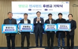영암 남재옥 기자2025. 12.30[정보신문 = 남재옥 기자] 영암군의 한우경진대회 수상자와 지역기업 대표가, 29일 군청에서 지역사회 상생 및 나눔 문화 확산의 하나로 열린 천사펀드 기탁식에서 총 600만원을 기탁했다. 영암군 천사펀드는 지역사회가 십시일반으로 모은 기금을 재원으로, 금융권 대출이 어려운 취약계층에게 무담보·무이자·무보증으로 긴급 생활안정자금을 지원하는 사회적 금융이다. 한우농가 김성도 씨와 서승민 씨가 각각 200만원, 문영식 씨와 김양선 바른사무기기 대표가 각각 100만원을 기탁하며 나눔에 동참했다. 천사펀드 기탁자들은 한...