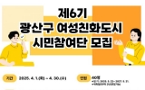 광산구 김금덕 기자2025. 03.28[정보신문 = 김금덕 기자] 광주시 광산구(구청장 박병규)가 제6기 광산구 여성친화도시 시민참여단을 모집한다. 여성친화도시 시민참여단은 성평등 정책 및 생활환경 개선 사업 등 여성친화도시 사업을 추진하고 정책을 제안하는 역할을 한다. 이번 6기는 △교육·워크숍 통한 역량 강화 △일·가정 균형 문화 조성 캠페인 △안전취약지역 발굴 △마을돌봄공동체 및 가족친화환경 조성 사업 홍보 △광산구 여성친화사업 및 정책 홍보 등 다양한 활동을 펼친다. 또한, 광산경찰서와 협력해 공중화장실 불법카메라 탐지 및 여성안심귀갓길 점검 등...