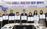 동구 남재옥 기자2025. 12.25[정보신문 = 남재옥 기자] 광주 동구는 지난 23일 구청에서 동구지역자활센터 등 11개 서비스 제공기관과 업무협약을 체결하고, 2026년 ‘동구형 통합돌봄’ 사업을 본격 추진한다고 밝혔다. 이번 협약에는 ▲광주동구지역자활센터 ▲광주광역시 안심돌봄센터 ▲광주재가노인복지협회 ▲(사)한국노인장기요양기관협회 광주지부 ▲광주의료복지사회적협동조합 ▲(사)대한물리치료사협회 광주광역시회 ▲(사)대한작업치료사협회 광주광역시·전라남도회 ▲(사)대한치과위생사협회 광주·전남회 ▲집수리공동체 ▲예술유통협동조합 ▲사회복지법인 영화복지회 등 총 11개...
