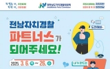 전남 김금덕 기자2025. 03.11[정보신문 = 김금덕 기자] 전라남도자치경찰위원회는 자치경찰을 홍보하고 정책 아이디어를 함께 만들 전남자치경찰 파트너스를 오는 26일까지 모집한다고 밝혔다. 자치경찰 파트너스는 도민의 다양한 아이디어를 모아 자치경찰 홍보콘텐츠를 만들고, 지역 맞춤형의 특색있는 치안정책 아이디어를 발굴하기 위한 젊은 세대 참여 프로그램이다. 자치경찰에 관심이 많고 열정 있는 전남지역 대학생이나 고등학생이면 개인 또는 팀을 구성해 누구나 지원할 수 있다. 참여 신청은 전남자치경찰위원회 누리집(www.jeonnam.go.kr/jnapc)에서 ...