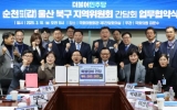 정치 김금덕 기자2025. 03.10[정보신문 = 김금덕 기자] 더불어민주당 순천·광양·곡성·구례(갑)-울산북구의 업무협약식이 국회 제1간담회의실에서 진행됐다. 이번 업무협약식은 더불어민주당의 전국정당 실현을 위해 원내·원외 지역위원회 간 상시적인 교류 및 협력 강화를 목표로 한다. 행사는 ▲순천 갑·울산북구 지역 추진사업 현황과 협력방안 논의 ▲더불어민주당 전라남도당 특별당비 500만원 전달식 ▲순천갑-울산북구 상호협력을 위한 현판식 게시 등이 진행됐다. 이동권 울산북구 지역위원장은 “대한민국 제1호 순천만 국가정원에 이어 태화강이 제2호 국가정...