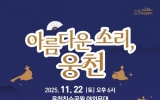 여수 남재옥 기자2025. 11.19[정보신문 = 남재옥 기자] 여수시(시장 정기명)는 오는 11월 22일(토) 웅천친수공원에서 야간관광 특화도시 프로그램 ‘아름다운 소리, 웅천’을 개최한다. ‘아름다운 소리, 웅천’은 여수의 소리를 기반으로 판소리, 민요, 전통무용, 성악, 힙합 댄스 등 전통과 현대가 어우러지는 퓨전 국악 공연으로 구성되며 여수한나래전통예술단이 주관한다. 이번 행사는 단순한 예술 공연을 넘어 시민이 직접 무대에 참여할 수 있는 시민 참여형 공연으로 진행된다. 지역의 숨은 고수들을 발굴해 재능과 끼를 마음껏 발휘할 수 있도록 무대를 마련...