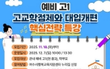 여수 남재옥 기자2025. 11.19[정보신문 = 남재옥 기자] 여수시(시장 정기명)는 관내 예비 고등학교 1학년(현재 중학교 3학년)과 학부모를 대상으로 ‘고교학점제와 대입 개편 핵심 전략 특강’을 운영한다. 이번 특강은 오는 12월 7일(일) 오전 10시, 오후 1시 30분 두 차례에 걸쳐 여수시행복교육지원센터 제1강의실에서 진행되며 총 120명을 모집한다. 강의는 서울 강남 등 전국에서 활동 중인 입시교육 전문가 이미연 강사(유튜브 ‘이로울쌤’)가 맡아 고교학점제와 대입 변화를 설명해 학생과 학부모의 진로·진학 고민을 돕는 시간으로 구성될 예정이다. ...