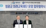 영광 김금덕 기자2025. 02.17[정보신문 = 김금덕 기자] 영광군(영광군수 장세일)과 영광교육지원청(교육장 고광진)은 지난 17일 지역의 미래를 밝히고, 더 나은 교육 환경을 제공하기 위한 영광군 미래교육재단 운영 업무협약식을 진행했다. 영광군과 영광교육지원청은 그동안 미래교육재단 설립준비위원회를 운영하며 전라남도 사전협의 등을 거쳐 미래교육재단 설립 준비에 박차를 가해왔다. 2025년 상반기에 조례 제정, 창립 이사회 개최, 설립허가 신청 등 행정절차 추진 후 하반기에 출범할 계획이다. 이번 협약의 주요 내용은 △지역 교육발전전략 수립을 위한 상...