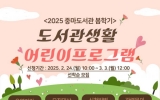 광양 김금덕 기자2025. 02.17[정보신문 = 김금덕 기자] 중마도서관에서는 오는 봄학기(3월 10일~4월 16일), 6주 동안 유아들(5~7세)과 초등학생(1~2학년)을 대상으로 「봄학기 도서관 생활 어린이 프로그램」을 운영한다고 밝혔다. 이번 프로그램은 연령별 맞춤형 교육으로 구성됐으며, 총 3개 반이 운영된다. ▲ ‘책 속으로 봄 나들이 가요’는 유아 5~6세를 대상으로 한 유아 맞춤 미술놀이다. ▲ ‘옛 이야기 요술항아리’는 옛이야기를 주제 다양한 종이접기 놀이를 진행한다. 초등학생 1~2학년을 위한 ▲ ‘흥美진진 명화이야기’는 세계 여러 나라의 명...