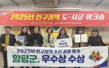 담양 남재옥 기자2025. 12.22[정보신문 = 남재옥 기자] 함평군의 지속적인 정주 여건 개선 노력이 인구정책 종합평가 우수상 수상으로 이어졌다. 함평군은 전남도가 지난 19일 함평엑스포공원 금호아시아나관에서 개최한 ‘2025년 인구정책 종합평가’에서 우수상을 수상했다고 22일 밝혔다. 이번 평가는 전남도 내 22개 시군을 대상으로 ▲인구정책 추진 체계 ▲정주 여건 개선 ▲생활밀착형 복지정책 등을 종합적으로 살펴 우수 지자체를 가려내는 방식으로 진행됐다. 함평군은 사람이 머무르고 정착할 수 있는 지역 기반을 체계적으로 조성한 점에서 높은 평가를 받...