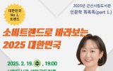 군산 김금덕 기자2025. 02.03[정보신문 = 김금덕 기자] 군산시립도서관은 2025년 인문학 특강의 시작으로 ‘트렌드 코리아 2025’ 공동저자인 한다혜 작가를 초청, ‘소비트렌드로 바라보는 2025 대한민국’이라는 주제로강연을 운영한다. 19일 오후 7시에 열리는 이번 강연에서 한다혜 작가는 옴니보어·토핑경제·무해력·기후감수성 등 2025년에 꼭 알아야 할 대한민국 10대 소비트렌드 키워드를 소개한다.또한 최신 지식정보를 제공해 시대의 변화와 흐름에 대한 이해도를 높이고, 시민들이 주도적으로 분석하는 능력을 키울 수 있는 다양한 방법도 전수할 예정이다. ...