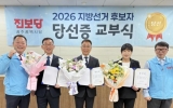 사회 남재옥 기자2025. 12.20[정보신문 = 남재옥 기자] 진보당 광주광역시당(위원장 김주업)은 12월 15일 월요일부터 19일 금요일까지 전 당원 모바일 투표를 거쳐 시장 후보로 이종욱 민주노총광주본부장을, 시의원 비례대표 후보로 박미경 민주노총 공공연대노동조합 광주본부장을 각각 선출하고 19일 후보 당선증을 교부했다. 아울러 북구 두암동, 문화동, 풍향동과 석곡동 구의원 후보로 이재광 전 전국공무원노동조합 광주본부장을 선출했다. 이종욱 후보는 “늦깎이 신입 당원에게 시장 도전의 기회를 주신 광주시당 전 당원께 깊은 감사를 드린다. 제게는 30년...