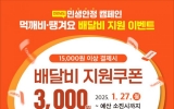 완도 김금덕 기자2025. 01.17[정보신문 = 김금덕 기자] 전라남도가 민생경제 종합대책 일환으로 공공배달앱 ‘먹깨비’와 상생배달앱 ‘땡겨요’에서 소비 진작 할인 이벤트를 추진한다. 20일부터 먹깨비와 땡겨요 앱에서 지역사랑상품권으로 1만 5천 원 이상 결제 시 3천 원 상당 할인쿠폰을 받을 수 있다. 27일부터는 배달비 지원 쿠폰도 사용할 수 있다. 1만 5천 원 이상 결제 시 3천 원 상당의 배달비 지원 쿠폰을 사용할 수 있으며, 두 할인 혜택은 중복으로 누릴 수 있다. 전남도는 소상공인의 수수료 부담 완화를 위해 1.5~2.0%의 낮은 중개수수료를...