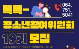 경제 김금덕 기자2025. 01.07[정보신문 = 김금덕 기자] 제주특별자치도에서 위탁 운영하고 있는 제주특별자치도청소년활동진흥센터(센터장 강옥련, 이하 센터)는 2025년 청소년의 참여로 변화하는 제주를 이끌어 갈 제19기 제주특별자치도 청소년참여위원회 신규 청소년 위원을 오는 2월 9일(일)까지 모집한다. 청소년참여위원회는 청소년 기본법 제5조의 2(청소년의 자치권 확대)에 근거하여, 정부 및 지방자치단체의 청소년 정책을 만들고 추진해가는 과정에 주체적으로 참여할 수 있도록 마련된 제도적 기구다. &...