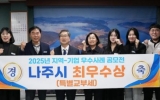 나주 남재옥 기자2025. 12.17[정보신문 = 남재옥 기자] 나주시가 지역과 기업이 함께 참여한 폐현수막 재활용 시범 사업으로 행정안전부 주관 2025년 지역-기업 협업 우수 사례 공모전’에서 최우수상에 선정돼 자원순환 선도 도시로서의 경쟁력을 다시 한번 입증했다. 나주시(시장 윤병태)는 행정안전부가 주관한 이번 공모전에 나주, 세종, 강릉, 청주, 창원 등 5개 지자체가 협업팀을 구성해 폐현수막 재활용 시범 사업으로 참여했으며 서면 심사와 발표 심사를 거쳐 최우수 사례로 최종 선정돼 특별교부세를 지원받게 됐다고 17일 밝혔다. 이번에 최우수 평가를 받...