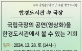제주시 김금덕 기자2024. 12.20[정보신문 = 김금덕 기자] 한경도서관은 문화가 있는 날 주간을 맞이하여, 다양한 문화 경험 제공을 위한 상영과 더불어 , 를 운영한다. 은 국립중앙극장 공연 영상화 공모사업으로, 전국 방방곡곡 누구나 쉽게 우수 공연 콘텐츠를 접할 기회를 제공하고자 기획된 ‘2024 우리동네 국립극장’프로그램이다. 상영작은 「나무, 물고기, 달」로 현대인의 마음을 따뜻하게 감싸 안는 동화 같은 창극이며, 12월 28일(토) 오후 2시부터 한경도서관 다목적실에서 운영된다. 참여하고 싶은 제주시민은 12월 16일(월)부터 제주특별자치...