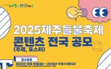 [정보신문 = 김금덕 기자] 제주시는 내년 3월에 개최되는 2025 제주들불축제의 주제와 포스터 2개 분야에 대한 전국 공모를 실시한다. 이번 공모는 2025 제주들불축제에 대한 국민적 관심을 높이고, 축제를 보다 풍성하고 의미 있게 만들기 위해 추진된다. 주제 공모는 축제를 상징하는 슬로건으로 20자 내외의 표어를 작성하면 되고, 포스터 공모는 축제의 정체성을 반영한 A2 사이즈의 시각적 이미지를 제작하면 된다. 제출은 제주시 누리집 고시/공고에서 지원서를 내려받아 작성한 후 내년 1월 3일까지 제주시 관광진흥과...