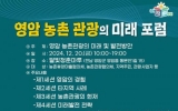 영암 김금덕 기자2024. 12.19[정보신문 = 김금덕 기자] (재)영암문화관광재단은 12월 20일(금) 전라남도 영암 달빛청춘마루에서 ‘2024 영암 농촌관광의 미래 포럼’을 개최한다. 이번 포럼은 ‘영암 농촌관광의 발전방안’을 주제로, 지역 농촌관광 활성화와 혁신적인 방향성을 논의하는 장이 될 예정이다. 포럼은 강신겸 전남대학교 문화전문대학원장의 기조발제인 「영암관광의 발전방안」을 시작으로, 4개 세션과 종합토론으로 구성된다. 각 세션에서는 ▲영암의 경험, ▲ 타지역 사례, ▲농촌관광의 현재, ▲미래발전 전략 등 영암의 농촌관광 사례를 비롯해 타지역의 성...