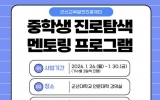 군산 남재옥 기자2025. 12.17[정보신문 = 남재옥 기자] 군산교육발전진흥재단이 겨울방학을 맞아 ‘중학생 진로탐색 멘토링 프로그램’ 참여자를 모집한다. 이번 프로그램은 중학생들에게 진로 탐색의 기회를 제공하고 자기주도적 학습 의욕을 높이기 위해 마련됐다. 진행은 2026년 1월 26일부터 30일까지 군산대학교 인문대학 강의실에서 진행되며, 총 130명의 중학생이 참여할 예정이다. 특히 효율적인 운영을 위해 2개 기수(1기 : 2026년 1월 26일 ~ 28일 / 2기 : 2026년 1월 28일~30일)로 나누어 진행한다. 주요 프로그램은 인공지능...