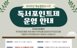 화순 김금덕 기자2024. 12.12[정보신문 = 김금덕 기자] 화순군(군수 구복규)은 화순 열린도서관에서 12월 17일(화)부터 “2025년 화순열린도서관 독서점수제(독서포인트제)” 참가자를 모집한다고 밝혔다. 화순 열린도서관은 지역 주민들에게 독서에 대한 동기를 부여하고 독서문화를 확산하기 위해 “독서점수제(포인트제)”를 추진한다. 독서점수제는 매월 독서 목표를 달성하면 5,000점을 적립하여 지역 상품권으로 지급하는 사업으로, 지난해 시범운영을 거쳐 올해는 총 200명을 모집해 운영되고 있다. 2025년에는 초등학생들의 독서목표가 다소 부담된다는 의견...
