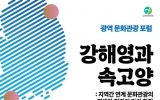 영암 김금덕 기자2024. 12.03[정보신문 = 김금덕 기자] (재)영암문화관광재단은 강진‧해남‧영암문화관광재단 공동운영으로 ‘광역 문화관광 포럼 ’을 12월 5일(목) 서울 용산 나인트리 프리미어 로카우스 호텔에서 개최한다. 한국관광공사 광주전남지사 김완수 지사장의 인사말을 시작으로 전개되는 포럼의 핵심 키워드는 강해영(강진‧해남‧영암군)과 속고양(속초‧고성‧양양군)으로 인구감소와 지방소멸에 대응하기 위한 각 지역의 협업 프로젝트명이다. 도로의 동선축이 비슷하고 역사적 경험이 동일한 양 지...