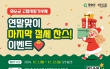 화순 김금덕 기자2024. 12.02[정보신문 = 김금덕 기자] 화순군(군수 구복규)은 연말을 맞아 고향사랑기부제 기부문화 활성화 및 2024년 목표 모금액 달성을 위해 고향사랑기부제 「연말맞이 마지막 절세찬스! 이벤트」를 오는 2일부터 22일까지 21일간 진행한다고 밝혔다. 이벤트 기간 내에 화순군 기부 참여자를 대상으로 총 200명에게 무작위 추첨으로 스타벅스 1만 원 쿠폰(100명), 또는 화순팜 2만 원 쿠폰(100명)을 추가 증정할 예정이다. 응모 방법은 온라인(고향사랑e음), 오프라인(NH농협은행)을 통해 화순군에 10만 원 이상 기부하고 답례...