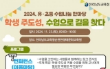 교육 김금덕 기자2024. 11.20[정보신문 = 김금덕 기자] 전라남도교육청(교육감 김대중)이 23일 전라남도교육청순천만생태문화교육원에서 ‘2024. 유·초등 수업나눔 한마당’을 개최한다. 이번 행사는 ‘학생 주도성, 수업으로 길을 찾다’를 주제로, 학생 주도성 키움 수업 나눔과 전남교육이 나아가야 할 수업의 방향 및 교사의 역할 모색을 위한 공감의 장으로 마련된다. 행사에서는 ‘학생 주도성 키움 수업을 위한 교사에게 필요한 역량’이라는 주제 강연을 비롯해 ▲ 유·초등 공감 토크 콘서트 ▲ 체험형 수업 톺아보기(16부스) ▲ 수업에 바로 적용하는 에듀...