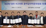 순천 김금덕 기자2024. 11.20[정보신문 = 김금덕 기자] 광주 서구의회(의장 전승일)는 11월 20일 서구의회 소회의실에서 제2기 윤리심사자문위원회 위원을 위촉하였다고 밝혔다. 윤리심사자문위원회는 교수, 법조인, 지방자치전문가 등 민간위원 7명으로 구성했으며 위원장에는 안태기 광주대 교수가, 부위원장에는 이은주 전 서구의회 부의장이 각각 선출됐다. 윤리심사자문위원회는 지방자치법 제66조 및 광주광역시 서구의회 회의 규칙 제85조에 따라 ▲지방의회의원의 겸직 및 영리행위 등에 관한 의장의 자문 ▲지방의회의원의 윤리강령과 윤리실천규범 준수 여부 및 징계...