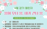 광양 남재옥 기자2026. 03.25[정보신문 = 남재옥 기자] 광양시는 오는 4월 1일부터 4월 30일까지 건강걷기 실천 모바일 걷기앱 워크온을 통해 ‘봄이 오나 봄, 내가 걷나 봄! 4월 걷기 챌린지’를 운영한다고 밝혔다. 이번 챌린지는 1걸음당 1마일리지가 적립되며, 하루 최대 8천 마일리지까지 쌓을 수 있다. 기간 동안 누적 20만 보를 달성한 참여자는 광양사랑상품권 5천 원권 응모 자격이 주어지며, 시는 목표 달성자 가운데 추첨을 통해 700명에게 상품권을 지급할 계획이다. 광양시민이면 누구나 참여할 수 있으며, 참여를 희망하는 경우 모바일 걷기 ...