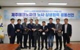 제주시 김금덕 기자2024. 11.11[정보신문 = 김금덕 기자] 경영과 징계, 근로조건 등을 두고 첨예한 갈등을 빚어온 제주테크노파크 노사가 제주특별자치도의 중재로 수차례 협상 끝에 상생협력하기로 전격 합의했다. 제주테크노파크(원장 문용석)와 공공과학기술연구노동조합 제주테크노파크지부(지부장 진희철)는 8일 오후 제주벤처마루 회의실에서 화합과 신뢰를 바탕으로 상생하는 노사문화를 만들기 위한 ‘노사 상생협력 공동선언문’을 발표했다. 제주테크노파크는 양측이 재단의 지속가능한 발전과 근로조건 개선을 위해 공정하고 예측가능한 시스템을 연내 도입하고, 불필요한 갈등의...
