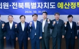장성 김금덕 기자2024. 10.31[정보신문 = 김금덕 기자] 전북특별자치도는 31일 국회 의원회관에서 전북 국회의원들과 예산정책협의회를 개최했다. 국회 예결위 예산심사(11.7~11.29)를 10일 앞두고 한 발 앞서 국가예산 확보 활동을 시작한 것이다. 회의는 김관영 전북특별자치도지사를 비롯해 이원택 의원(군산시김제시 부안군을, 더불어민주당 전북도당 위원장), 김윤덕 의원(전주시갑), 이성윤 의원(전주시을), 정동영 의원(전주시병), 신영대 의원(군산시김제시부안군갑), 이춘석 의원(익산시갑), 한병도 의원(익산시을), 윤준병 의원(정읍시고창군), 박희승 의...