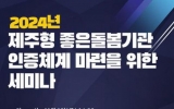 [정보신문 = 김금덕 기자] 제주특별자치도 장기요양요원지원센터(센터장 김성건)는 내달 1일「제주형 좋은돌봄기관 인증체계 마련을 위한 세미나」를 제주연구원(새별오름홀)에서 개최(제주 장기요양요원지원센터·제주연구원 고령사회연구센터 공동)한다고 밝혔다. 「제1차 제주특별자치도 장기요양요원 지원계획(2023~2027년)」에 따라 ‘제주형 좋은돌봄기관 인증체계 마련’을 위해 진행되는 본 세미나는 도내 장기요양기관 대표(협회장)를 비롯해 제주도 및 행정시(제주시, 서귀포시) 관계 공무원들이 참석할 예정이다. 서울특별시는 2019년...